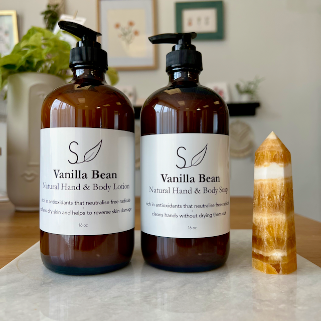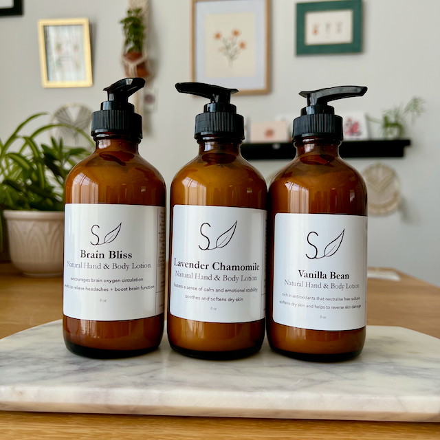 The hand and body lotion line is different than our body butters because they are made with water. Water allows them to absorb faster into your skin, so you can use them throughout the day without feeling oily.